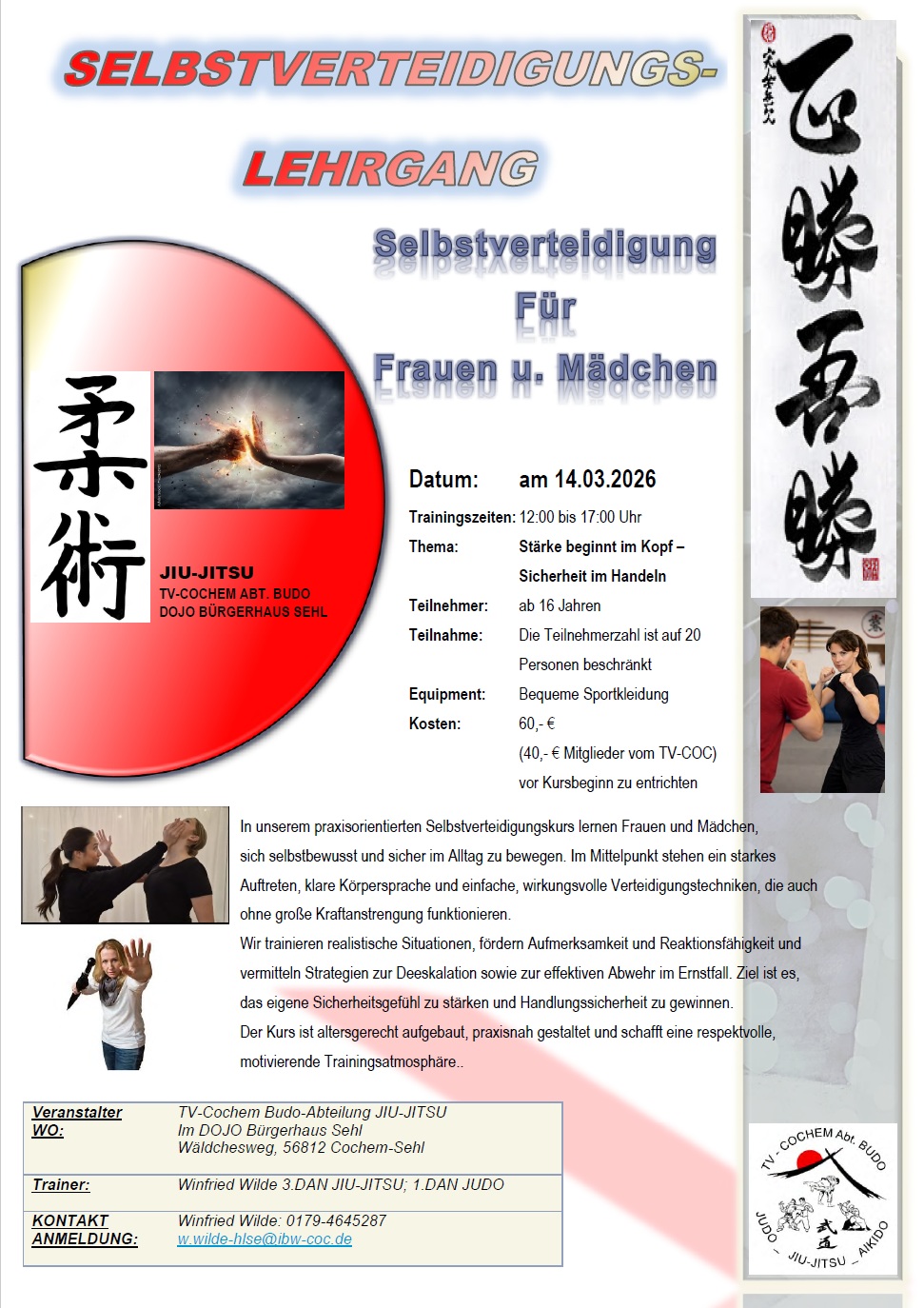 Bürgerhaus Sehl Kleiner Saal Wäldchesweg 9, Cochem, GermanyAnmeldung und Infos: Winfried Wilde: 0179-4645287 w.wilde-hlse@ibw-coc.de