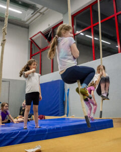 Im Geräteturnen entwickeln Kinder wichtige motorische Grundlagen auf spielerische und strukturierte Weise. Sie erlernen die zentralen Übungen an den klassischen Geräten: Sprung, Reck, Barren, Schwebebalken, Ringe und Boden. Ziel ist es, Bewegungsabläufe gezielt zu erlernen, regelmäßig zu üben und nachhaltig zu festigen.