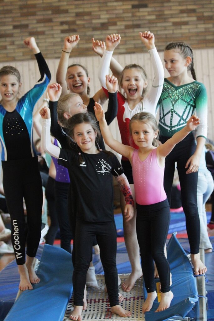 Die Kleinsten – Ella Rübenach (6) und Enna Thönnes (7) – turnten gymnastische Sprünge. Das hervorragende Niveau von Turnerinnen von TV Cochem wurde bei der Siegerehrung bestätigt: Enna Thönnes (7), Charlotte Hoepp (8), Anastasia Balut (11) und Luisa Clemens (12) erkämpften sich Gold, Ella Rübenach (6) und Jana Hoepp (9) Silber, Antonia Ciobanu wurde Dritte, Charlotte Fuchs Vierte und Alessia Steuer Achte.