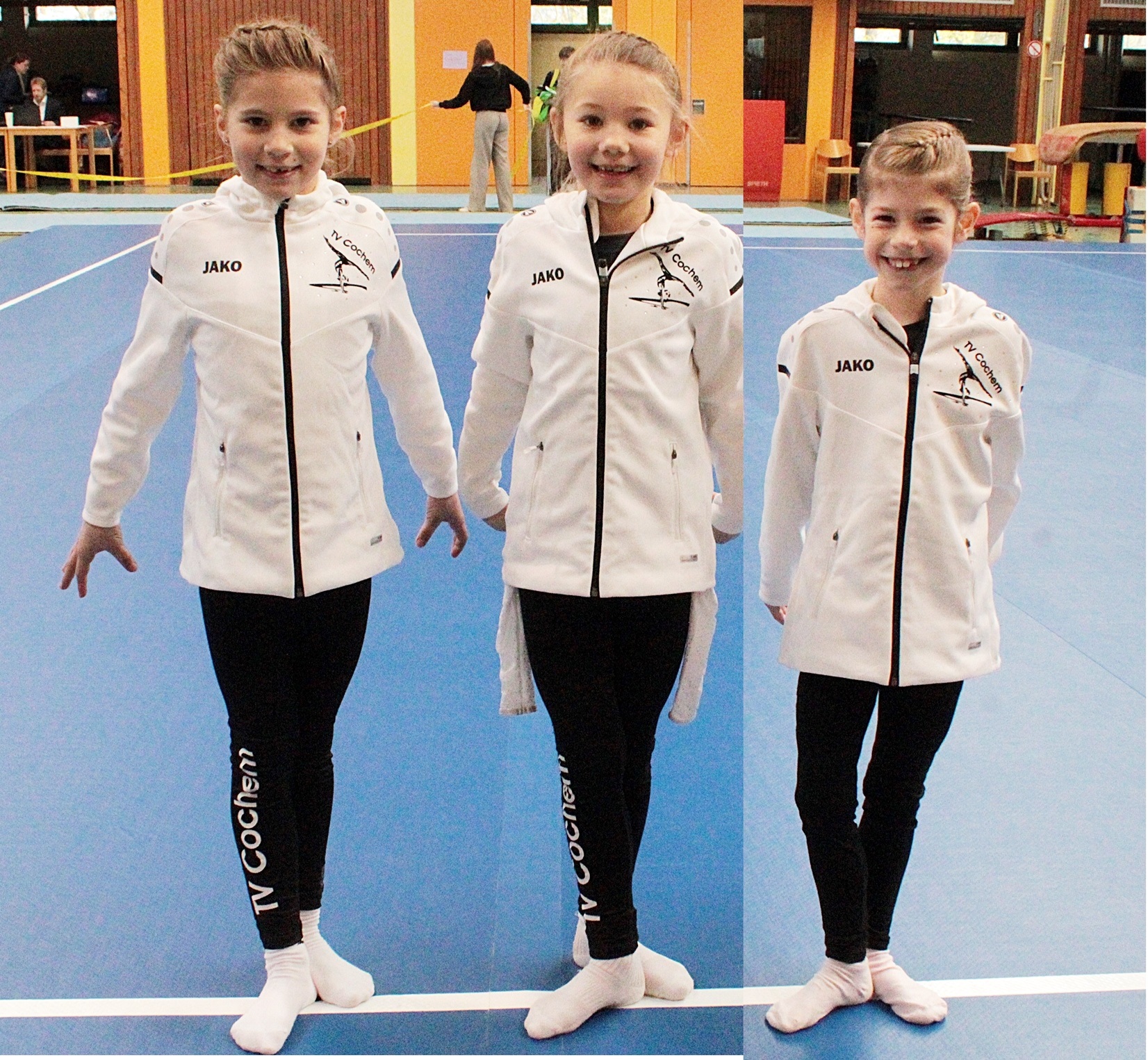 Drei Turnerinnen im RLP-Kader TV Cochem ist besonders stolz auf die Aufnahme von drei Nachwuchsturnerinnen in den Landeskader. Charlotte Hoepp (7) (Mitte), Jana Hoepp (8) (links) und Romy Lenz (8) (rechts) verdienten sich ihre Kaderpunkte bei der Prüfung der athletischen und technischen Normen für ihre Altersklassen.